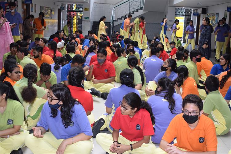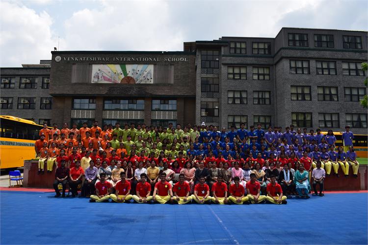 Venkateshwar International School organised a Leadership Camp for students of class X - XII to explore and nurture the latent talent of promising future leaders in the making.The eventful programme commenced with chanting of Gayatri Mantra and an inspiring address by esteemed Principal Dr. Manisha Sharma followed by intriguing fun games and activities.This much awaited Camp saw the participation of around 150 zealous group members in myriad of activities like Kindle the Flame, Unravel the mystery, Innovate to Renovate , Savoury Delights ,Vision and Skit Presentation. The memorable day culminated with rejuvenating guided meditation session and memento presentation.